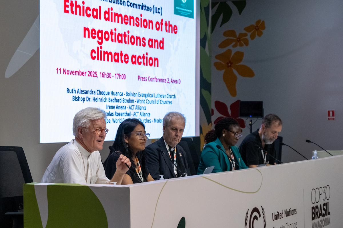 COP30(気候変動に関する国連枠組み条約第30回締約国会議)で記者会見を開いた諸宗教連絡委員会は11月11日、宗教指導者たちは富裕国に対し、自らが引き起こしたわけではない危機によって最も深刻な被害を受けたコミュニティに、融資ではなく無償資金供与という形で気候資金を提供するよう求めた。世界教会協議会(WCC)が12日に公式サイトで伝えた。