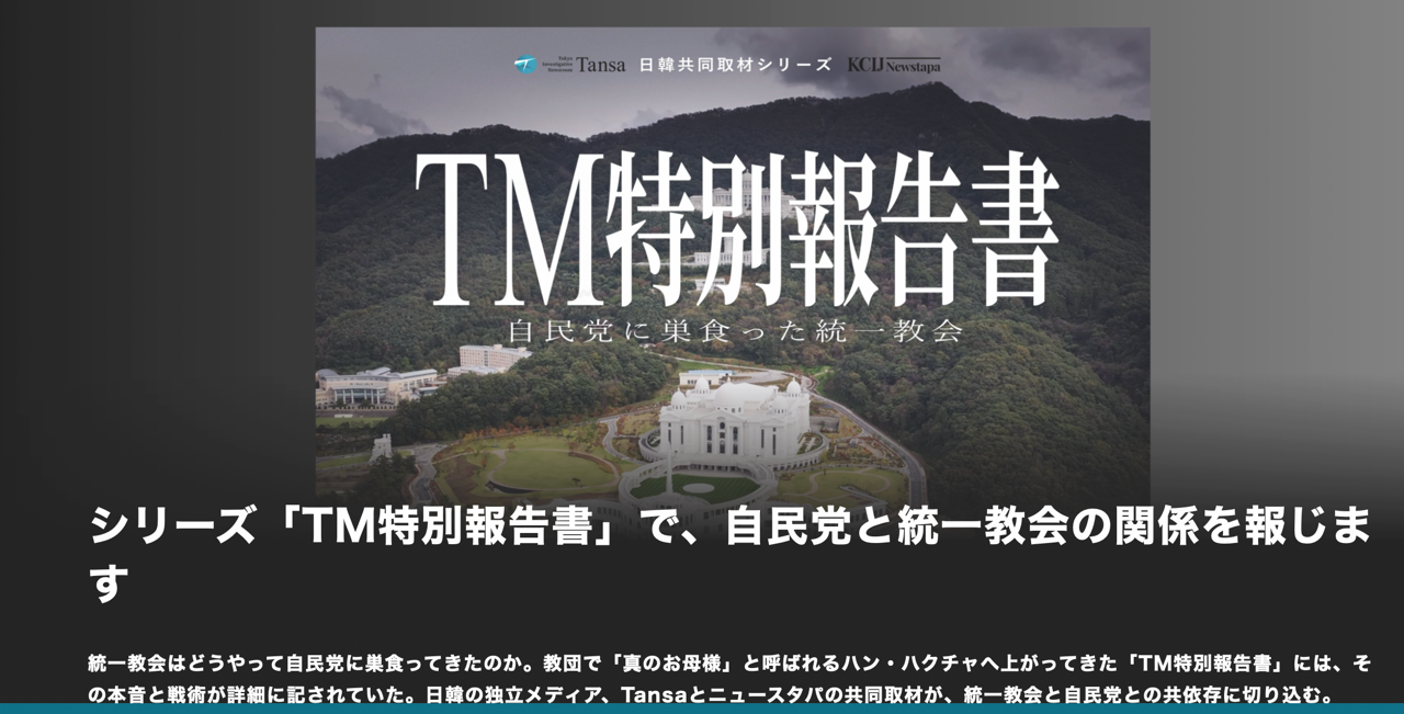 【異端・カルト110番】 「TM特別報告書」を日本語解説付きで公開 探査報道専門メディアTansa 韓国のニュースタパと共同取材