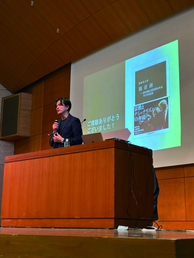 中央公論新社から出版した『福音派 終末論に引き裂かれるアメリカ社会』がわずか2カ月で6刷を重ね、さまざまなメディアで注目される中、著者である加藤喜之氏(立教大学教授)が11月6日、東京女子大学(東京都杉並区)で米福音派と政治との関係などをテーマに講義を行った。同大学人文学科哲学部会の主催によるもので、大学1年生を中心に400人以上の学生が受講した。