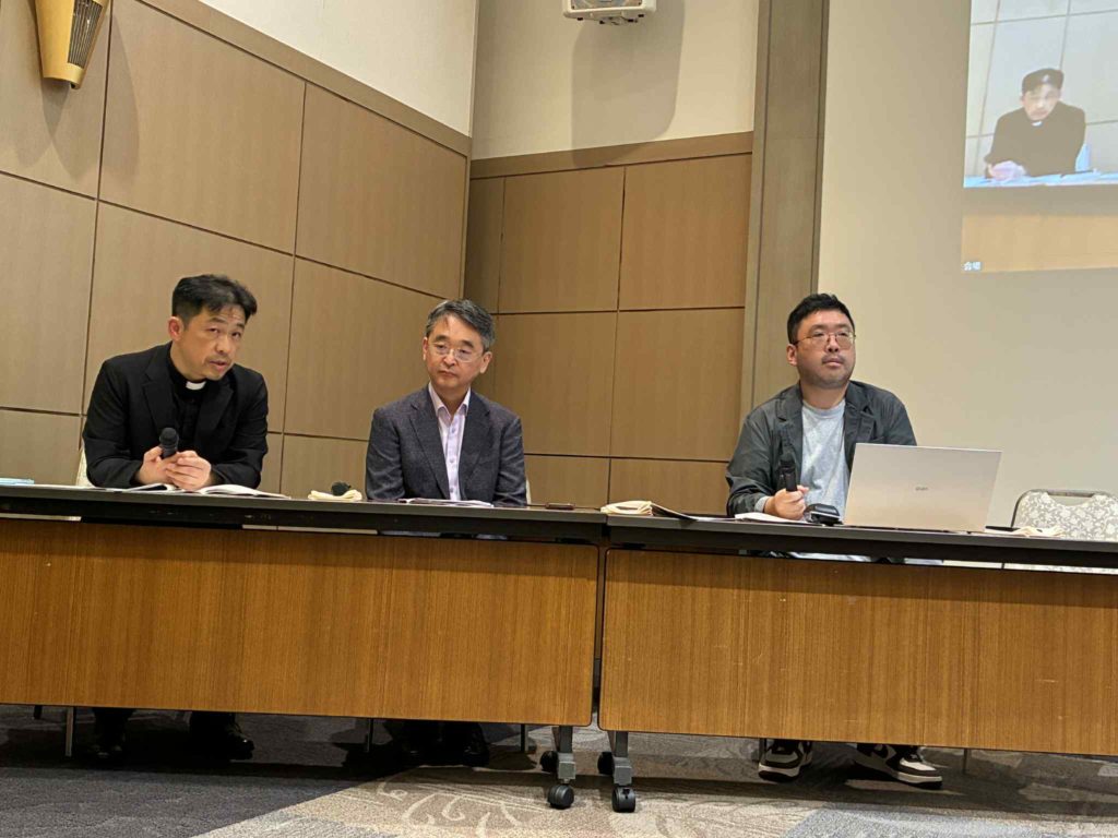 集会の終盤では、摂理(JMS、キリスト教福音宣教会)の実態について、被害者支援団体「エクソダス」の金度亨(キム・ドヒョン)氏(檀国大学教授)=写真中央、ネットフリックスドキュメンタリー『すべては神のために:裏切られた信仰』を演出したプロデューサーのチョ・ソンヒョン氏=写真右=が登壇。『すべては神のために』は2023年に全8話のシリーズが一斉配信され、特に香港出身のメイプルさんが実名・顔出しで自身の受けた性暴力被害を告発したことで話題を呼んだ。この8月には続編『私は生き延びた:韓国を揺るがせた悲劇の中で』も公開されている。
