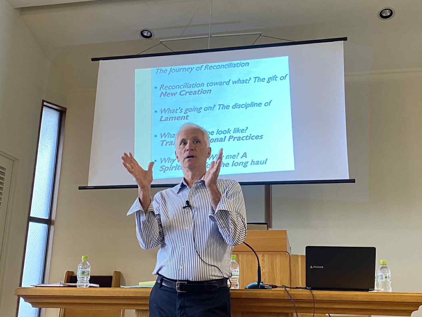 ライス氏は、ウクライナや中東、朝鮮半島など世界を覆う分断の現状に触れ、「自国第一主義が広がり、SNSが怒りと敵意を煽っている」と指摘。平和学者ジョン・ポール・レデラックの「道徳的想像力(Moral Imagination)」を引用し、「現実に根ざしつつ、まだ存在しないものを生み出す力こそ、キリスト教的和解の核心にある」と語った。